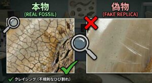 せっかくの大きな買い物を後悔してほしくない。そんな思いから、今回はメガロドンの歯の専門店である当店が、2026年時点での最新の「本物と偽物の見分け方」を5つのポイントに絞って徹底解説します!